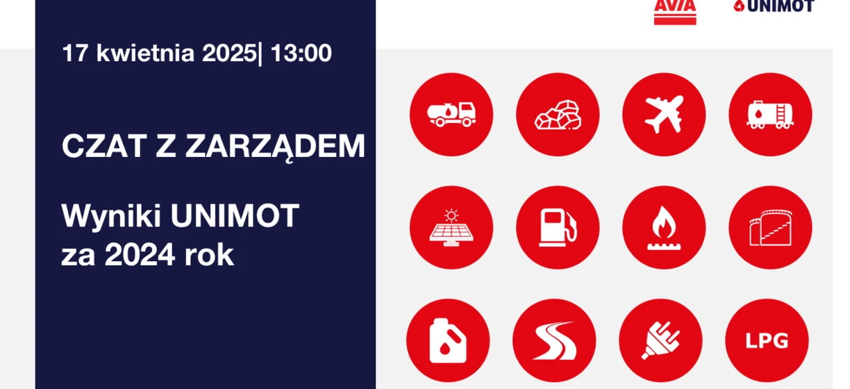 Zapraszamy Państwa na spotkanie z Zarządem UNIMOT S.A., którego tematem będą wyniki Grupy UNIMOT osiągnięte w 2024 roku.