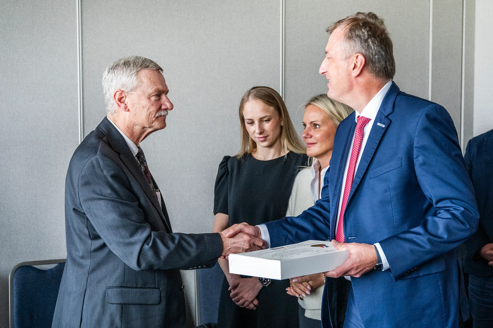 W wyrazie uznania prof. Jim Mazurkiewicz wręczył prezesowi Adamowi Sikorskiemu flagę Teksasu jako symbol współpracy polsko-amerykańskiej, a także symboliczne potwierdzenie przystąpienia UNIMOT do Polskiej Izby Handlowej w Teksasie.
